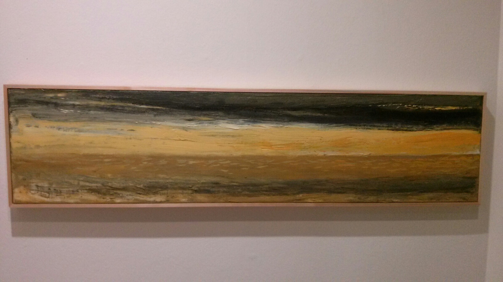 In his book ‘Landscape and Western Art’, Malcolm Andrews discusses W.J.T. Mitchell’s concept of the landscape, and among other things, the notion of the landscape as a man-made construct. Not any piece of land can qualify to become a landscape, the artist will choose and frame a particular piece of land from the entire landscape that he sees before him, or he will create a particular landscape in his mind which he will then try and copy onto the canvas in order to deliver the meaning and composition he is after. The landscape can become a symbol – it can represent the power of nature, the power of life, or even of human imperialism among other things. From this point of view, one wonders what is the meaning behind Tetsis’ darker landscapes in the current show.
