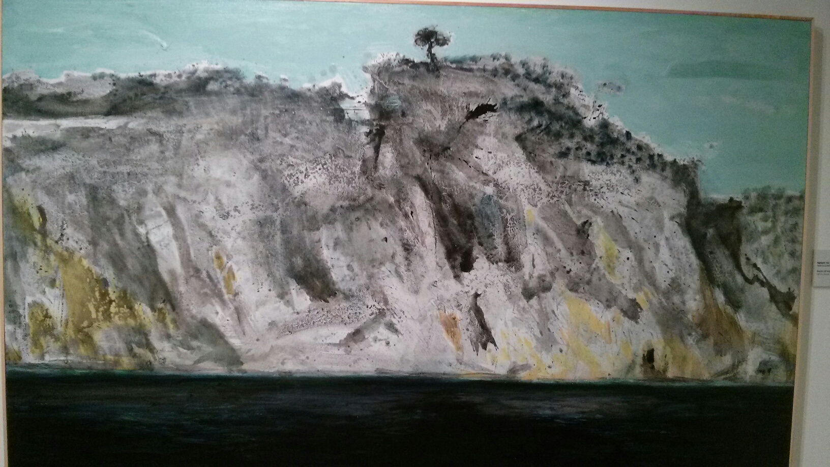 Tetsis’ seas are usually full of motion, he often enjoys rendering menacing waves curled and ready to crash with a crescendo. We have some of those in the current show, but this time, what seems to prevail, is the black and white – instead of the colour – especially in his portrayal of massive rock formations. Tetsis has said of his black and white works that in a sense they are more colourful than the others, because they give the viewer the opportunity to imagine them with colour, a process that one also undergoes when viewing a black and white photograph or film. Yet why so much black and grey, and this fascination with rocks?