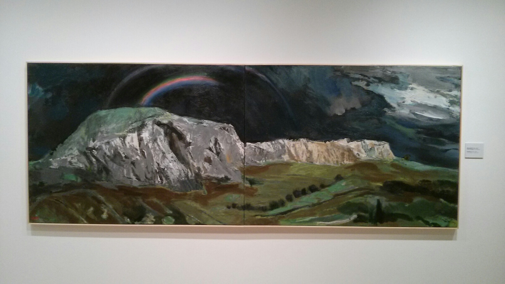 Yet there’s also a rainbow. In one of the works – with a particularly dark and gloomy sky – there’s a rainbow, a ray of hope. It’s almost like a vision, because let’s face it, you don’t see many rainbows in such dire weather conditions! What comes to mind is Jacob Van Ruisdael’s work ‘The Jewish Cemetery’ (1655-60), an allegorical work that has been interpreted as telling the story of man, the ruins in the work representing old age, while the rainbow in the dark sky has been called the ‘Mild arch of promise’ by Constable*. Similarly Tetsis’ rainbow seems to symbolize here the promise of something else, of the possible existence of another world – of eternity.
