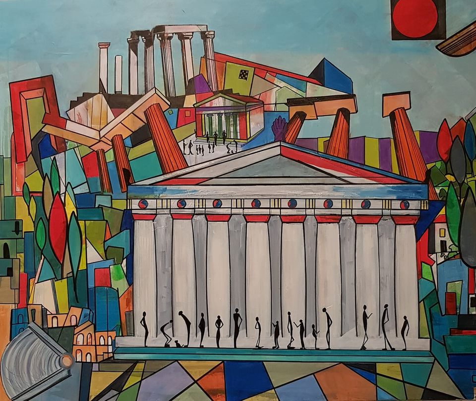 The art works on show are a testimony to the diverse and original nature of creativity in the south of Athens, focusing mainly on works by members and friends of the cultural society: From Werner Hermann’s abstract colourful paintings to Kyriakos Lazarides’ dynamic cityscapes, Stella Sevastopoulos’s landscapes, Kate Horti’s intriguing sculptures made from bicycle parts, Calliope Konstandara’s portraits and studies of the human figure, inspired in part by hagiography. The more classical works of hagiography by Angela Papadopoulou will also be on show, plus Chryso Kontakou’s colourful creations.