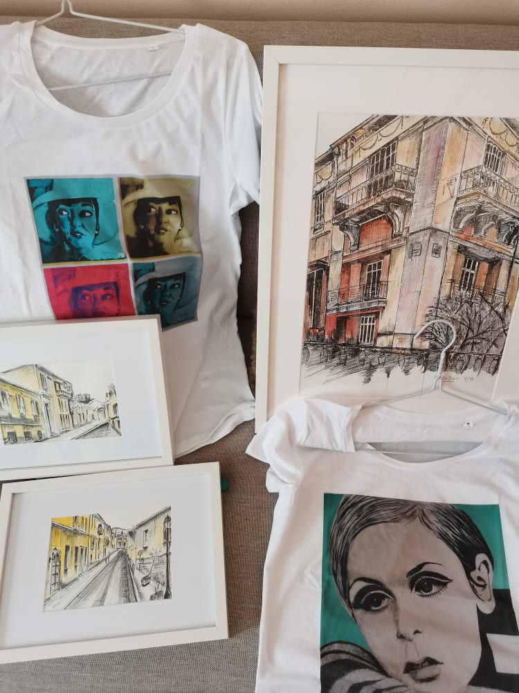 In the exhibition, you will find some of these creative routes: from colourful paintings and t-shirt designs with a pop aesthetic by Martin Davis, wonderful macramé creations by Stella Valvis, byzantine icons full of spirituality by Angela Papadopoulou, beautiful landscapes and seascapes by Sidan Ghazi, explorations of the many facets of femininity and the female form by Eva Pelekidou. Plus, depictions of intimate embraces by Calliope Konstantara, the dynamic expressionism of Kyriakos Lazarides, exciting Geometric abstractions by Werner Hermann, imaginative sculptures made from upcycling bicycle parts by Kate Horti (Bike stories sculpture by Kate Horti). And there’s more: delicate hand-crafted objects by Niki Stasinopoulou, painterly odes to nature by Stella Sevastopoulos, uniquely designed boxes and coasters by Mary Cox, are some of the other art objects you will encounter.
