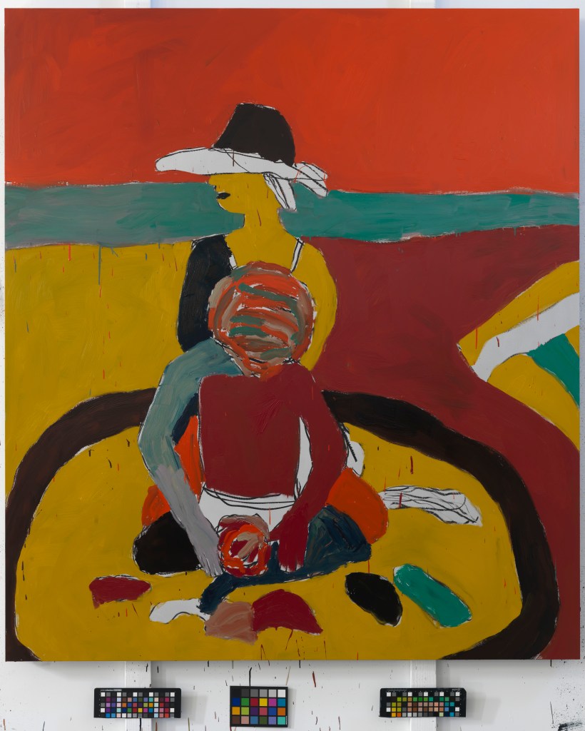 The large figurative works on aluminium of 2018-19, namely the ‘Madonna’ series, are arresting works that often celebrate the relationship of mother and child, and blissful family moments, although the poses do also have a scare factor at times, such as in ‘Madonna 1’, where there is ambiguity in the gesture of mother’s hands: are they protecting the baby, or are they threateningly close to its neck? David Fehrer says of this period: “Many people were astonished by Sean Scully’s return to figurative depiction. This dramatic turn was connected with the birth of his second son, Oisin, in 2009, whose presence brought about a substantial change both in Scully’s life and his art.” Scully’s first son had died in a car accident at the age of 18 (in 1983). One can imagine therefore why the birth of his second son made such an impact on the artist’s life.