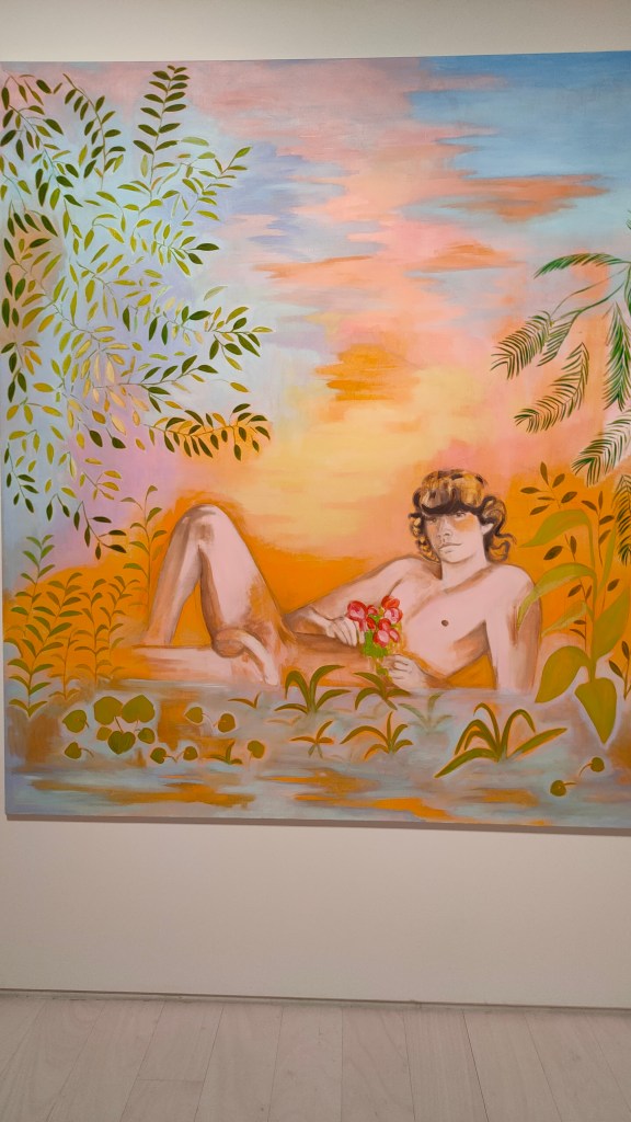 One could also say that this series of works by Bagaki places the male in the position that the female was often allotted in the art of past centuries (and not only), in terms of being the object of desire. The fluorescent colours and feminine gaze of the artist on her subject-matter add to the whole concept.