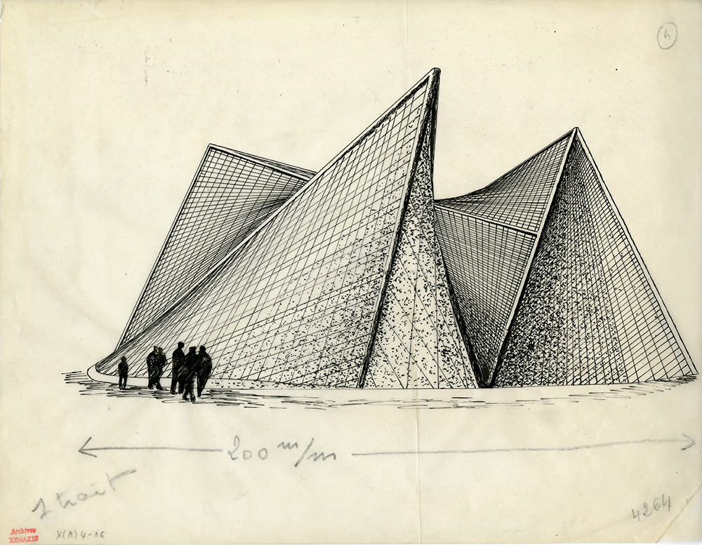 The exhibition is organised around six chapters, focusing on some of Xenakis’ most seminal works, both musical and architectural. A narrative thread, both thematic and chronological, invites the visitor to absorb Xenakis’ unique world through both sight and sound. The exhibition includes 20 musical and architectural opuses, 220 original and archival documents: photos, models, scores and personal items as well as a number of audio-visual works.