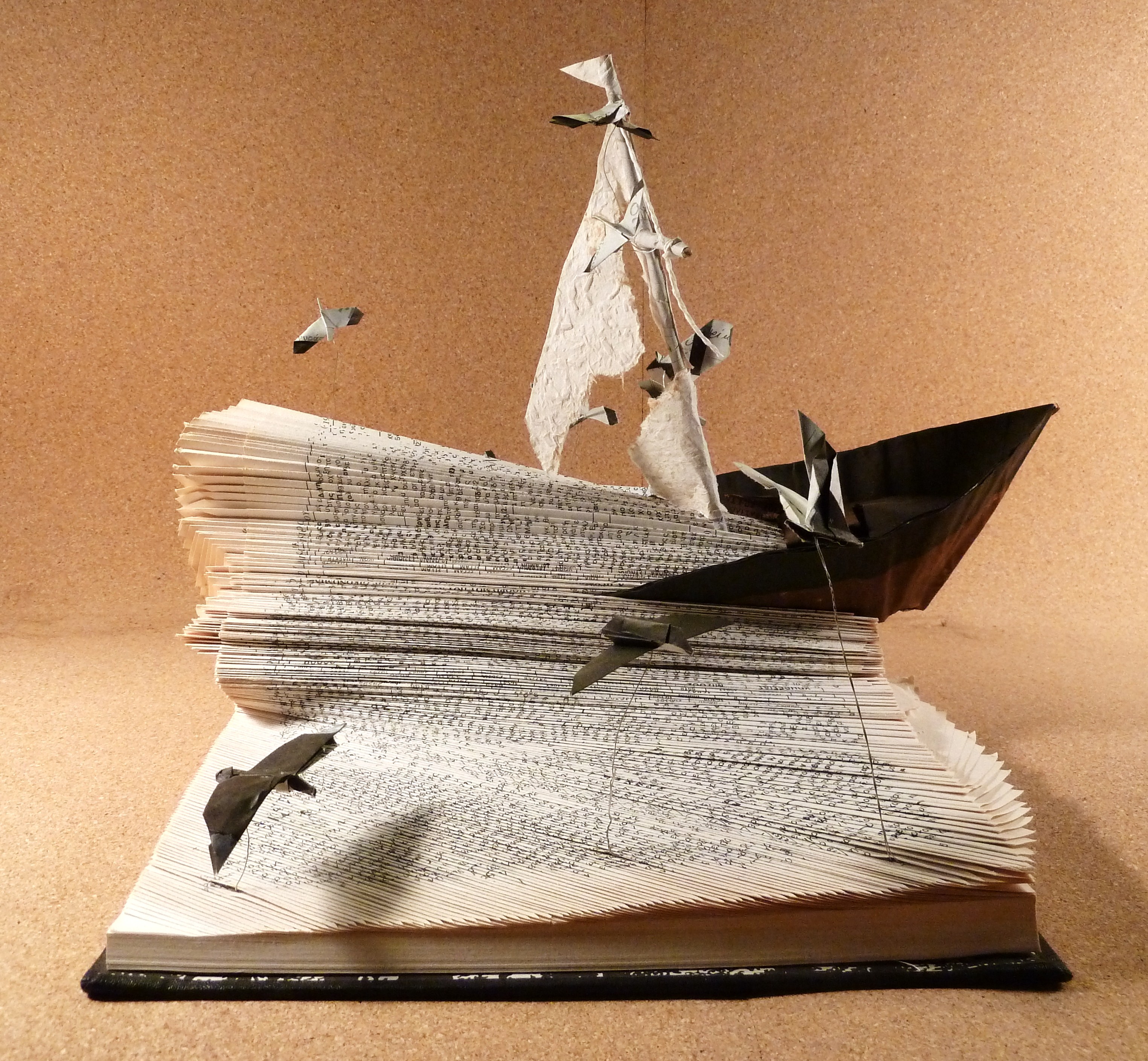 Eleftheria Gerari (born 1956) is an expressionist book sculptor. Eleftheria selects books in the same way as she would select the finest canvases and paintbrushes. From each book she creates a new and unique story. Each book is brought to life and transformed in a unique way as it shares her truth. More than just a book folder, Eleftheria destructures and restructures them, building new images, adding life and elements to transform them into a new scene.