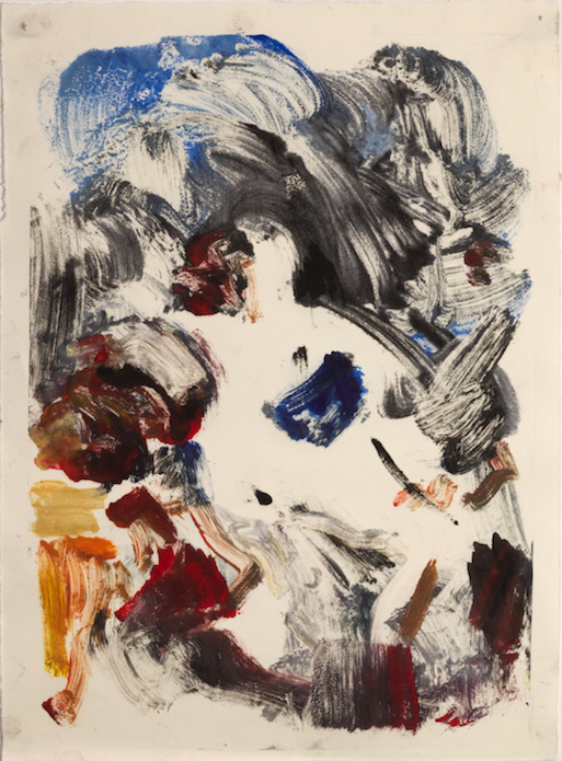 The title of the exhibition, A dancefloor of one’s own, referring to Virginia Woolf‘s essay A room of one’s own, describes the presented artworks both thematically and conceptually. The bold colors and celebratory scenes in her works on canvas are juxtaposed with her dark and introspective monotypes, mirroring the corresponding moments of everyday reality. A reality where so many contradictory things happen all at once and culminate into a frantic vortex, similar to the one of a disheveled party.