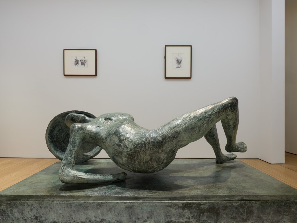 ‘Henry Moore and Greece’ explores links between Moore’s practice and earlier, antique Greek art, such as Cycladic sculpture. The artist made his one and only visit to mainland Greece in 1951 for an exhibition at the Zappeion Hall in Athens, also traveling to the archaeological sites of Delphi, Olympia, and Mycenae. He did not exhibit again in Athens until 1965. ‘Large Standing Figure: Knife Edge’ (1961), is one of Moore’s tallest and most striking postwar bronzes, informed by his interest in Cycladic figurines but at the same time recalling ‘The Winged Victory’ [or Niké] of Samothrace’ (c. 200–190 BCE). The exhibition also includes casts of ‘Draped Reclining Figure’ (1952–53), ‘Falling Warrior’ (1956–57), and the heads of ‘King and Queen’ (1952–53) — key sculptures in Moore’s dialogue with Greek art.