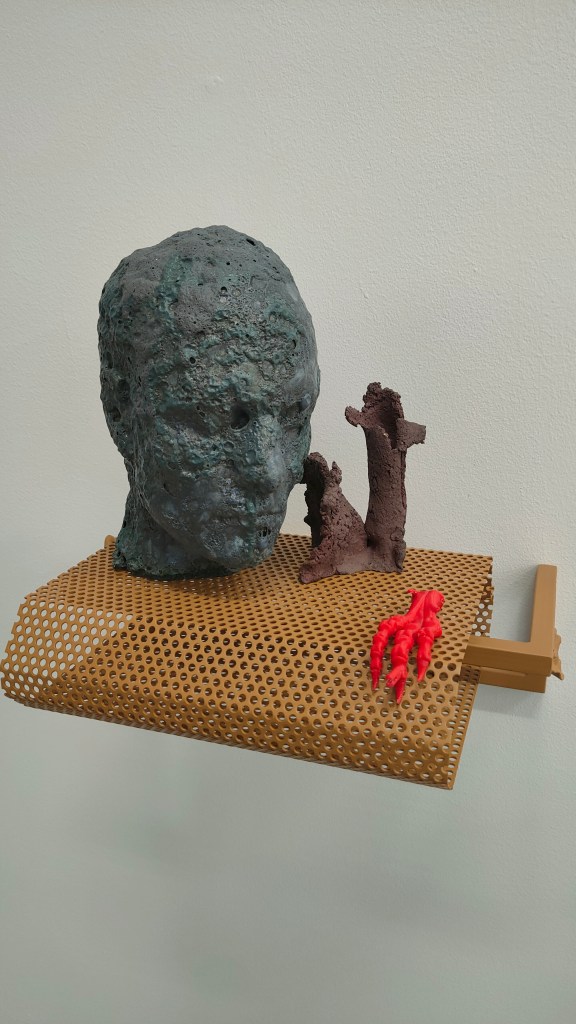 Also on view at Sylvia Kouvali, are works by Emre Huner. In an exhibition entitled Substrata Styrene, Huner has created sculptural still lifes which bring together the most diverse objects and processes. Artifacts, casted industrial waste, everyday objects, props and replicas are juxtaposed. From sneakers covered in lava glaze, to what could be future fossils, such as corroded marine fuel tanks, the artist’s quirky juxtaposition of diverse types of objects in her still lifes pose questions about the transmutation of human waste, among other things.