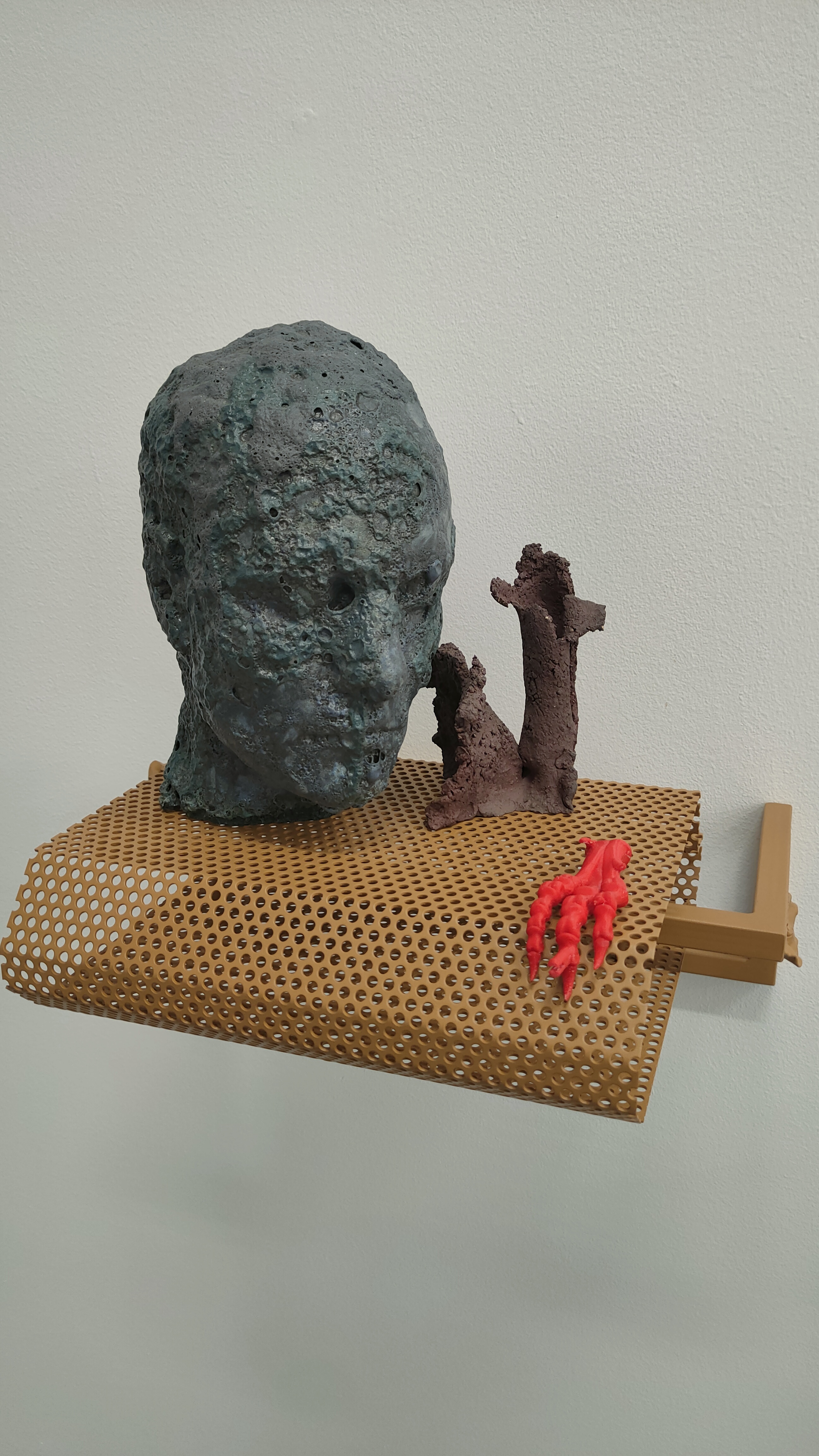 Also on view at Sylvia Kouvali, are works by Emre Huner. In an exhibition entitled Substrata Styrene, Huner has created sculptural still lifes which bring together the most diverse objects and processes. Artifacts, casted industrial waste, everyday objects, props and replicas are juxtaposed. From sneakers covered in lava glaze, to what could be future fossils, such as corroded marine fuel tanks, the artist’s quirky juxtaposition of diverse types of objects in her still lifes pose questions about the transmutation of human waste, among other things.