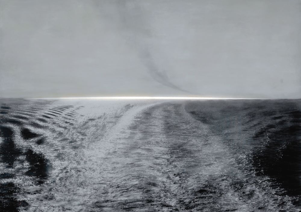 His recent work is dominated by paintings, but not in the conventional sense: in 2017-2018 he started experimenting with visuals containing words, a process of glueing written messages that give food for thought on large surfaces. During the pandemic, he focused on landscapes and interiors, creating images that manage to be inherently bright without external lighting.
