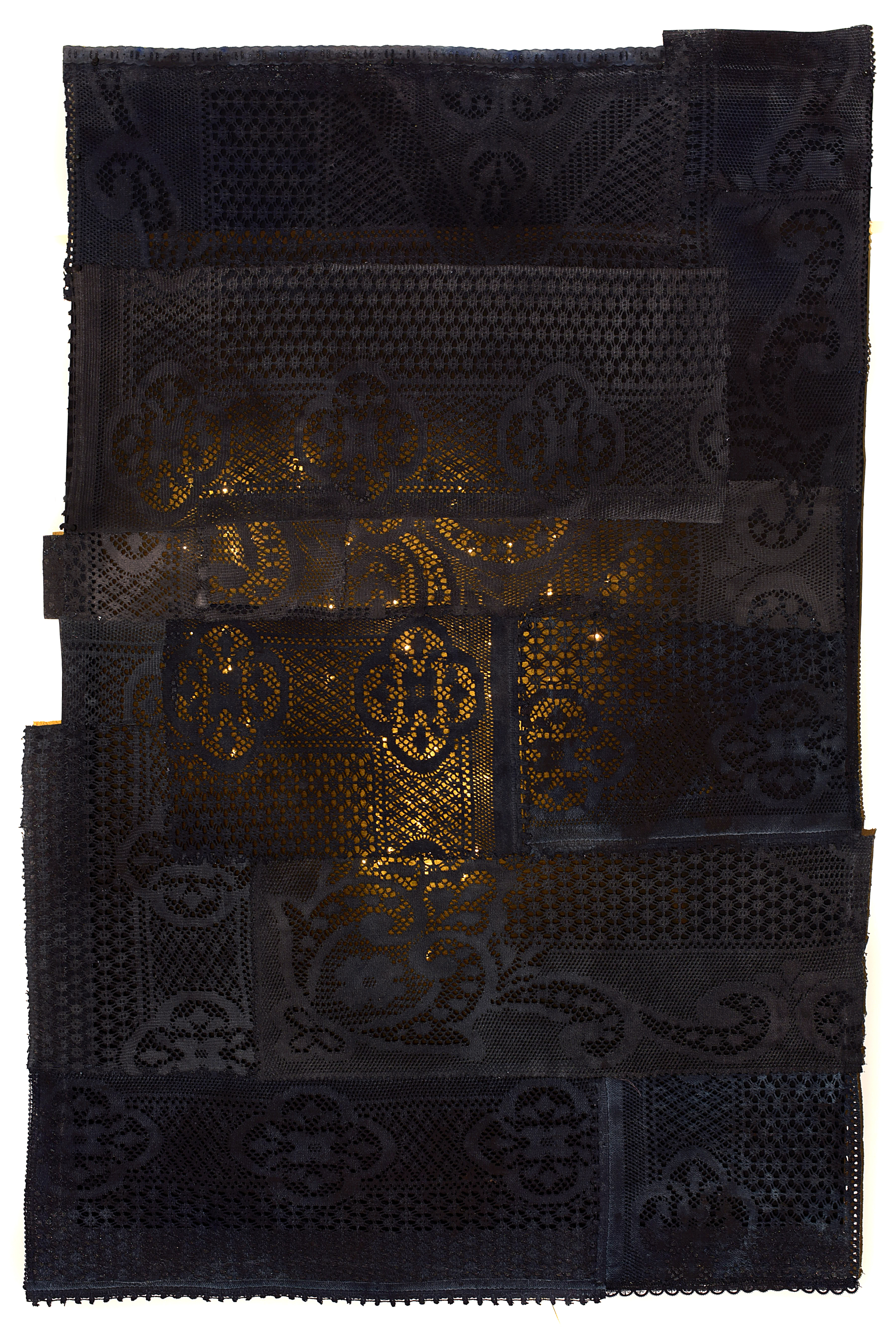 Krikki’s works ‘fall and flow’ like water or precious tears. She uses fabric pieces that she dyes, paints, and embroiders with tight or loose stitches. Bound together with paper, plaster, and glue, her creations hang freely in space, revealing both their front and back sides. These multicoloured, medium- and large-scale compositions unfold emotional recordings and impressions, ‘unions of life fragments inscribed on fabric.’