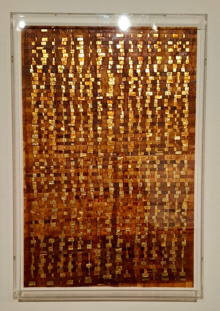 NIKOS PODIAS, an artistic alchemist of sorts, transforms elements of the everyday into mesmerizing visual creations. Delicacy, sensitivity, and intricacy are all part of his artistic practice, which also speaks of patience, the therapeutic and ritualistic act of repetition, and the beauty of metamorphosis. In his hands, stained papers of teabags are joined together, to become an ethereal lace tapestry and paper becomes the fragilest of armours. Paper foils found in cigarette boxes become a golden, abstract artwork reminiscent of both primordial inca artefacts and 60s-70s aesthetics. It is as if these materials have manifested into a new, higher realm, shedding their mundane everyday reality via the artist’s meticulous labour. But there is a touch of drama too in his current exhibition at Citronne gallery, where lighting plays a crucial role, casting shadows from some of the works, and so completing their whole. Nikos Podias’ exhibition-installation at Citronne Gallery, entitled Safe Area, runs till January 3.