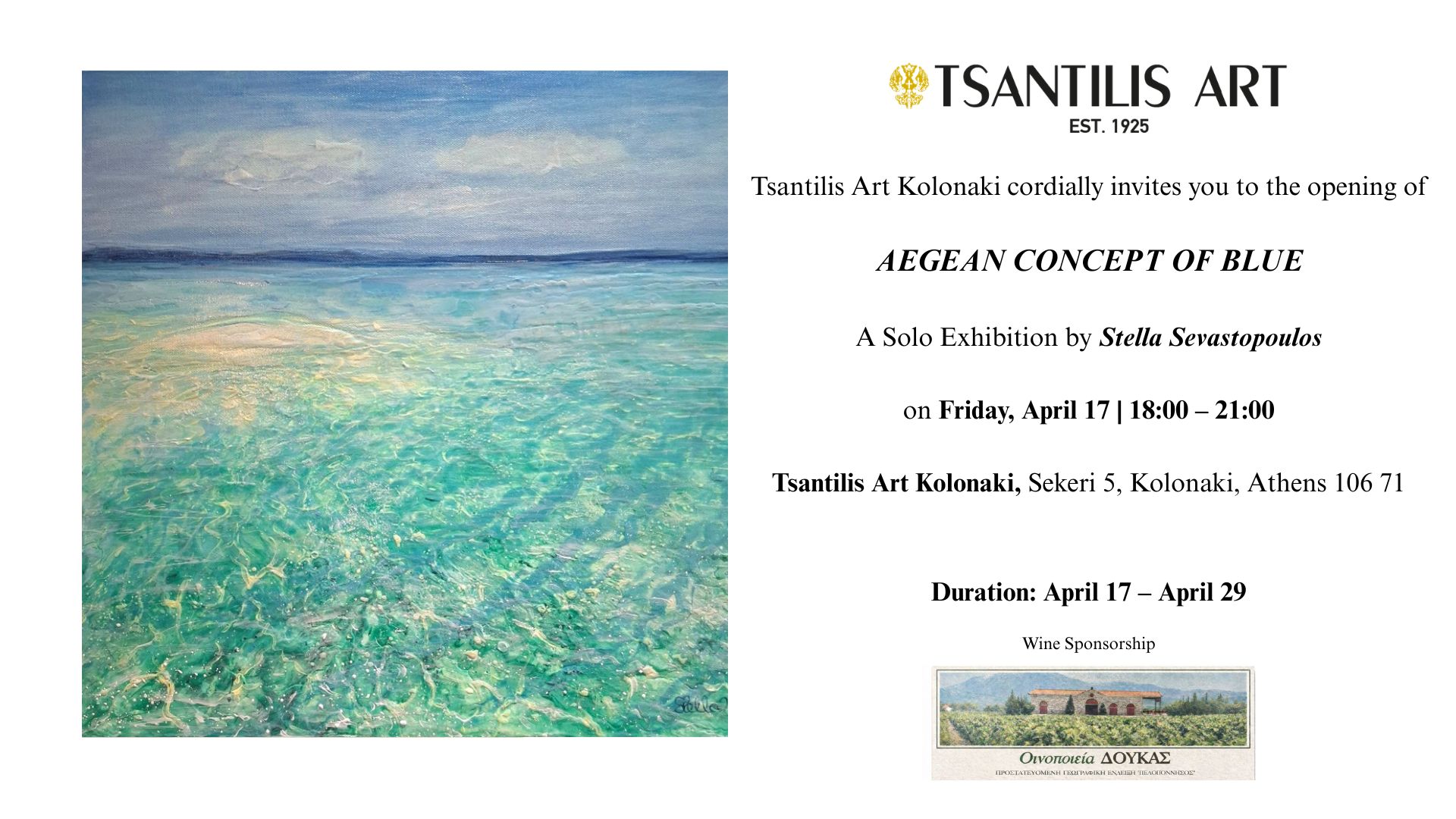 - Wine sponsorship for the exhibition opening by Doukas Winery, Organic Farming products. Exclusively at Sklavenitis.