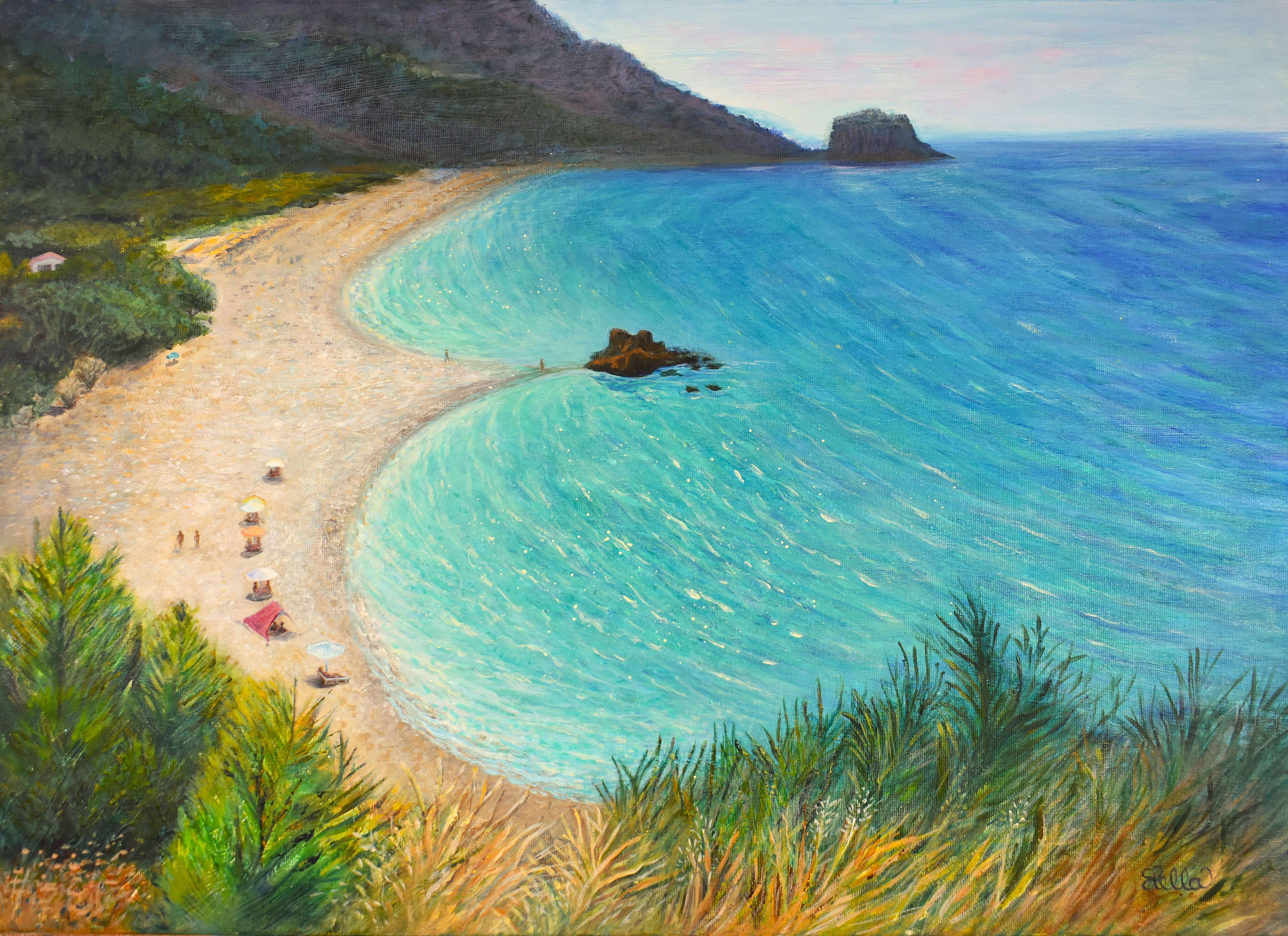 “The Aegean Sea lies between Greece and Turkey, between the edge of Europe and the beginning of Asia. Between the West and the East. Due to its unique seawater composition, the Aegean Sea has the widest range of blues than any other sea: from the darkest indigos to the lightest cyans and azures. My seascapes pay homage to the Aegean Sea, a sea which got its name from the myth of Aegaeus. I want to depict its many faces: from a wintery and wild grey sunset along the Athens Riviera coast, to the pristine turquoise waters of the Aegean Islands (and there are over 150 islands in the Aegean sea). From when this sea is at its most ‘expressive’, with its waves and dynamic motion, to when it is a tranquil, turquoise dream.”